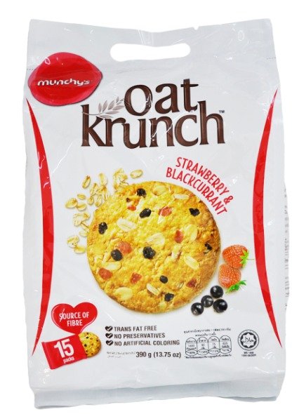 Nutritious oat biscuits with fruity strawberry & blackcurrant flavor.